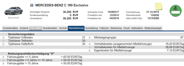 Beispiel MB C, 180 115 kW= Mietwagenklasse 07
