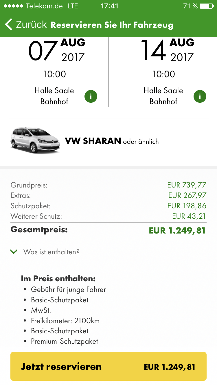 Rechtszeitschrift Mietwagenrecht§wi§§en 3-2020, Aufsatz „OLG Thüringen pro Fraunhofer und was davon zu halten ist“, Fußnote 11, Beispiel 1 (Mietwagengruppe 07, PLZ 06, Grundpreis 105,68 Euro pro Tag)