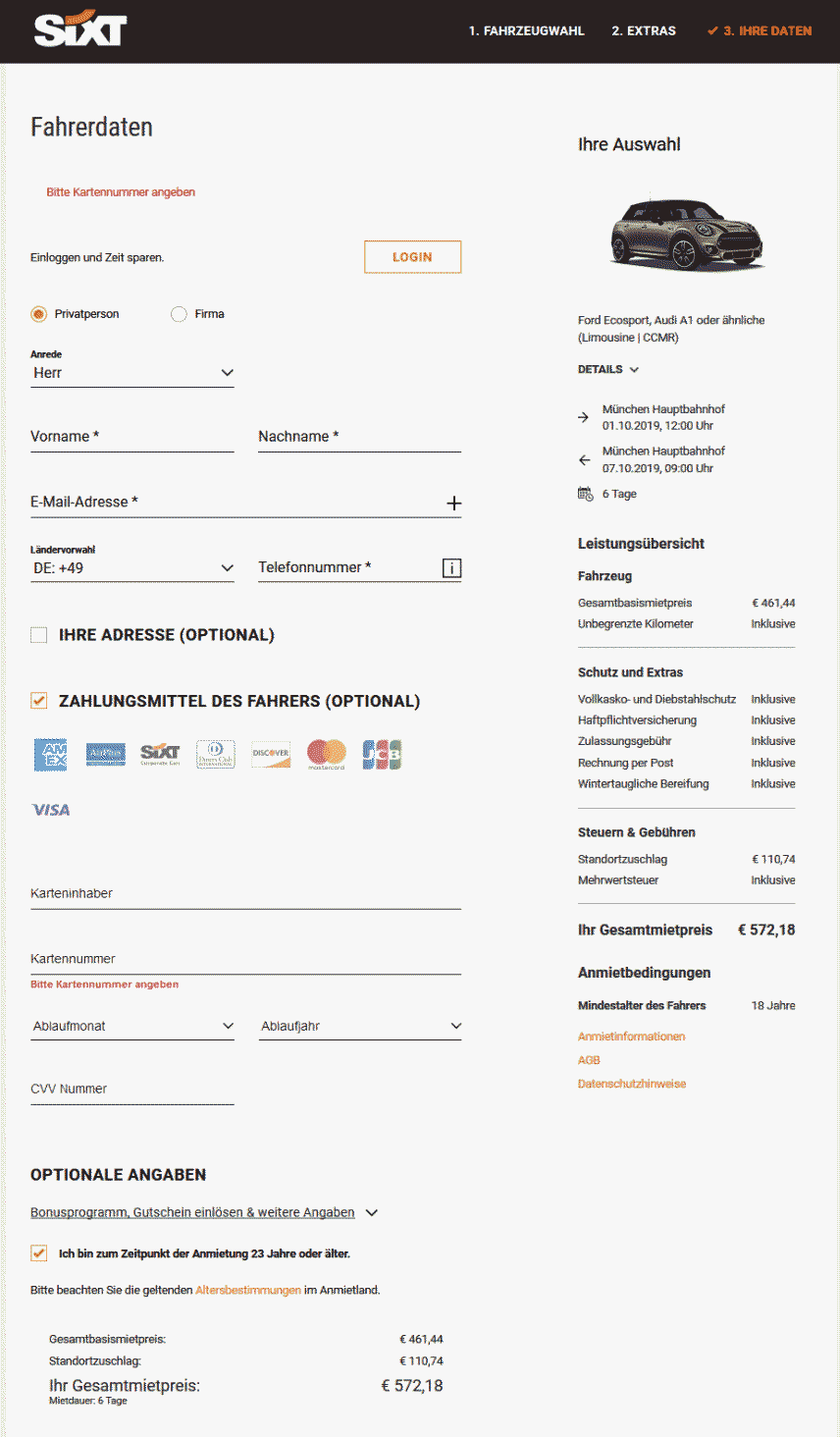Angebot per Internet am 01.10.2019 in München, Sixt, Mini 6 Tage ohne Nebenkosten